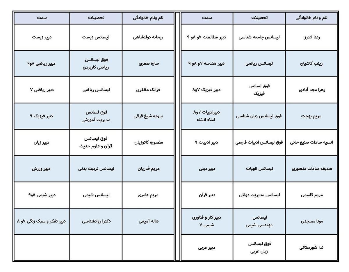 کادر آموزشی متوسطه اول